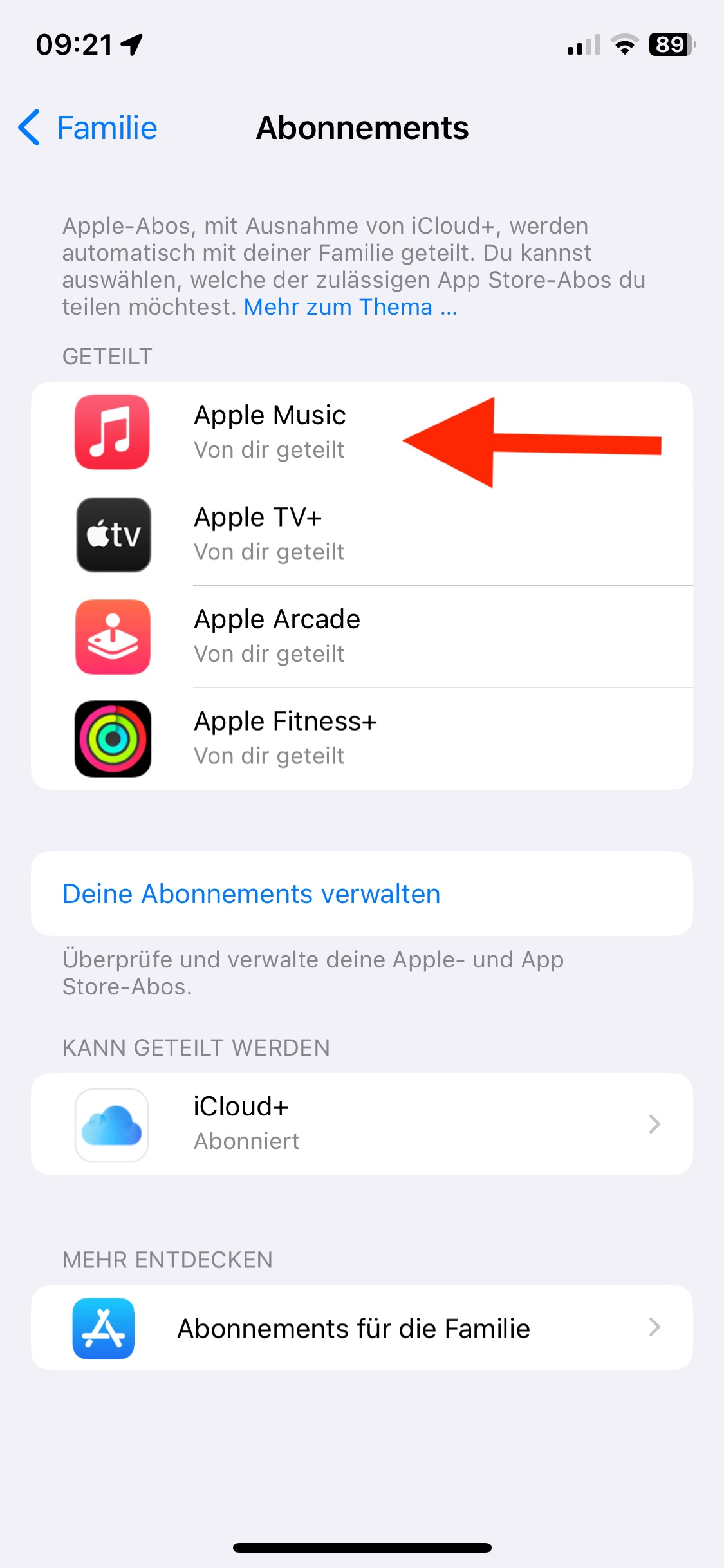 Ich habe mein Apple Music Abo erweitert und möchte nun die Familienfreigabe nutzen.