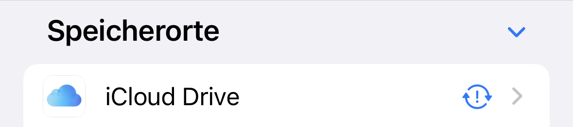 in der Dateien-App meines iPhones habe ich seit neuestem hinter dem "iCloud Drive" Symbol einen Kreis mit Doppelpfeil und ein einem Ausrufezeichen in der Mitte und wenn ich dann in die iCloud Drive gehe, steht ganz unten die Meldung "Synchronisierung mit iCloud angehalten".
