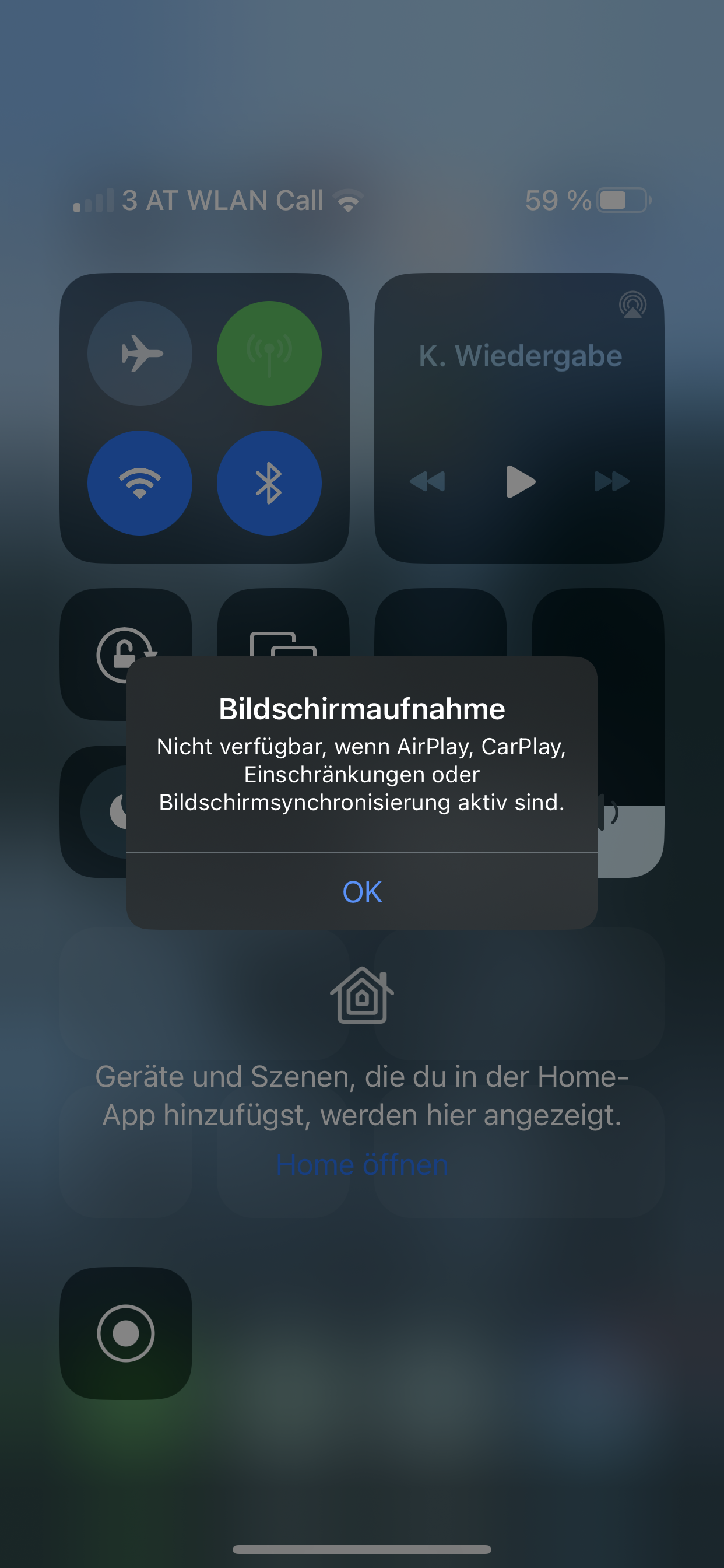 Hallo, ich habe ein iPhone XS und ich würde gerne Bildschirmaufnahme starten aber mir wird nur so eine komische Nachricht angezeigt und ich würde gerne diese unten genannten Sachen deaktivieren aber ich weiß nicht wie.Kann mir irgendjemand helfen?