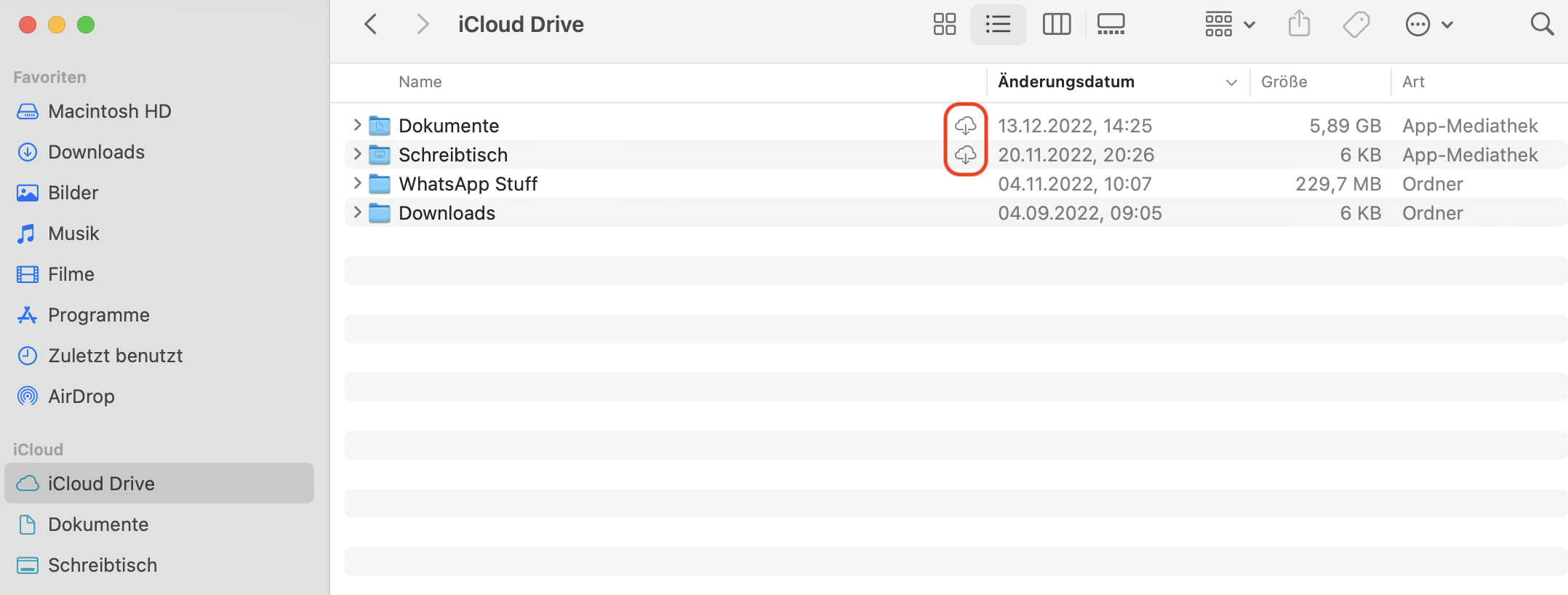 Status "nicht geladen" im Finder bei iCloud Drive Verzeichnissen