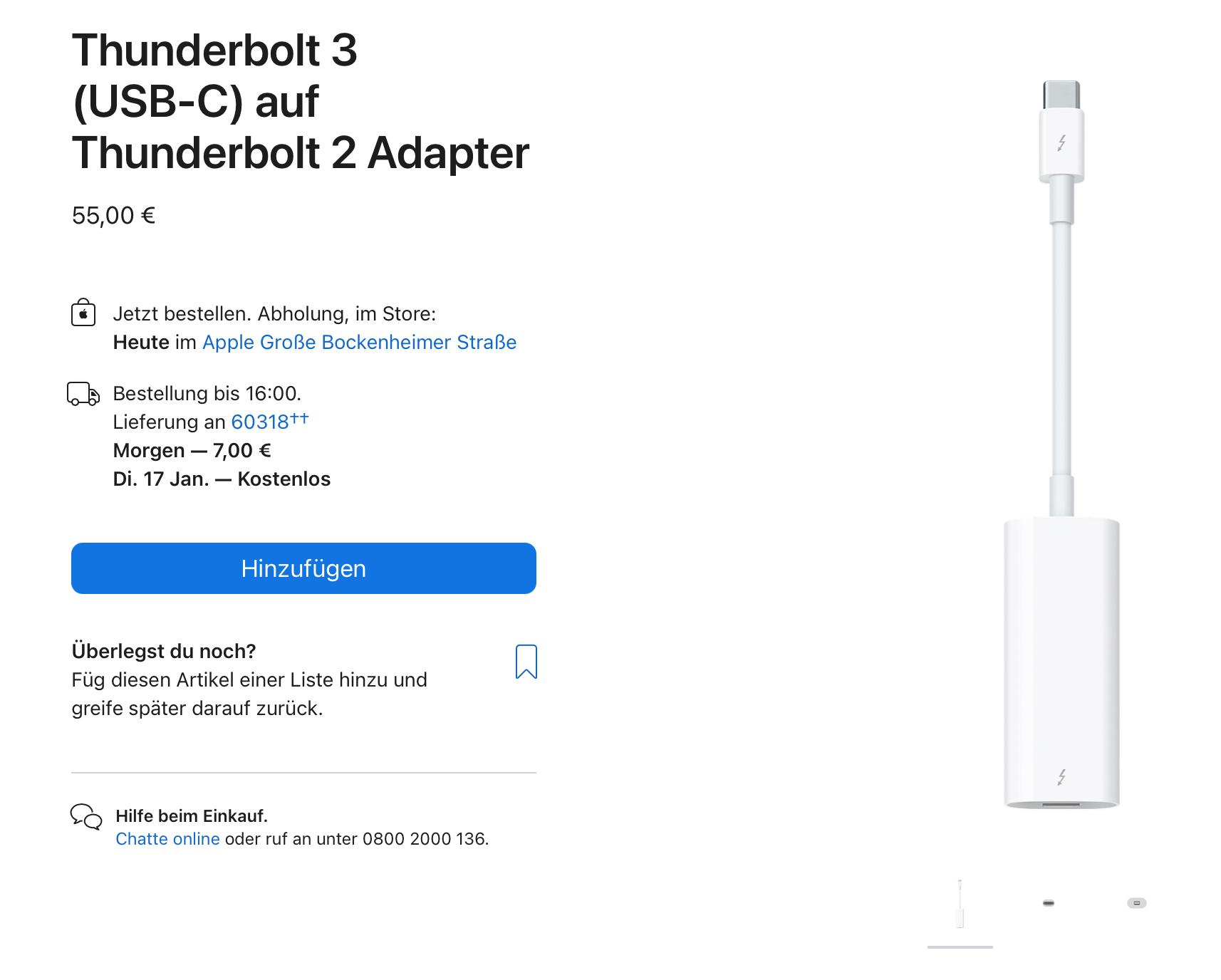 Zum ersten: den USB-C --> Thunderbolt 2,