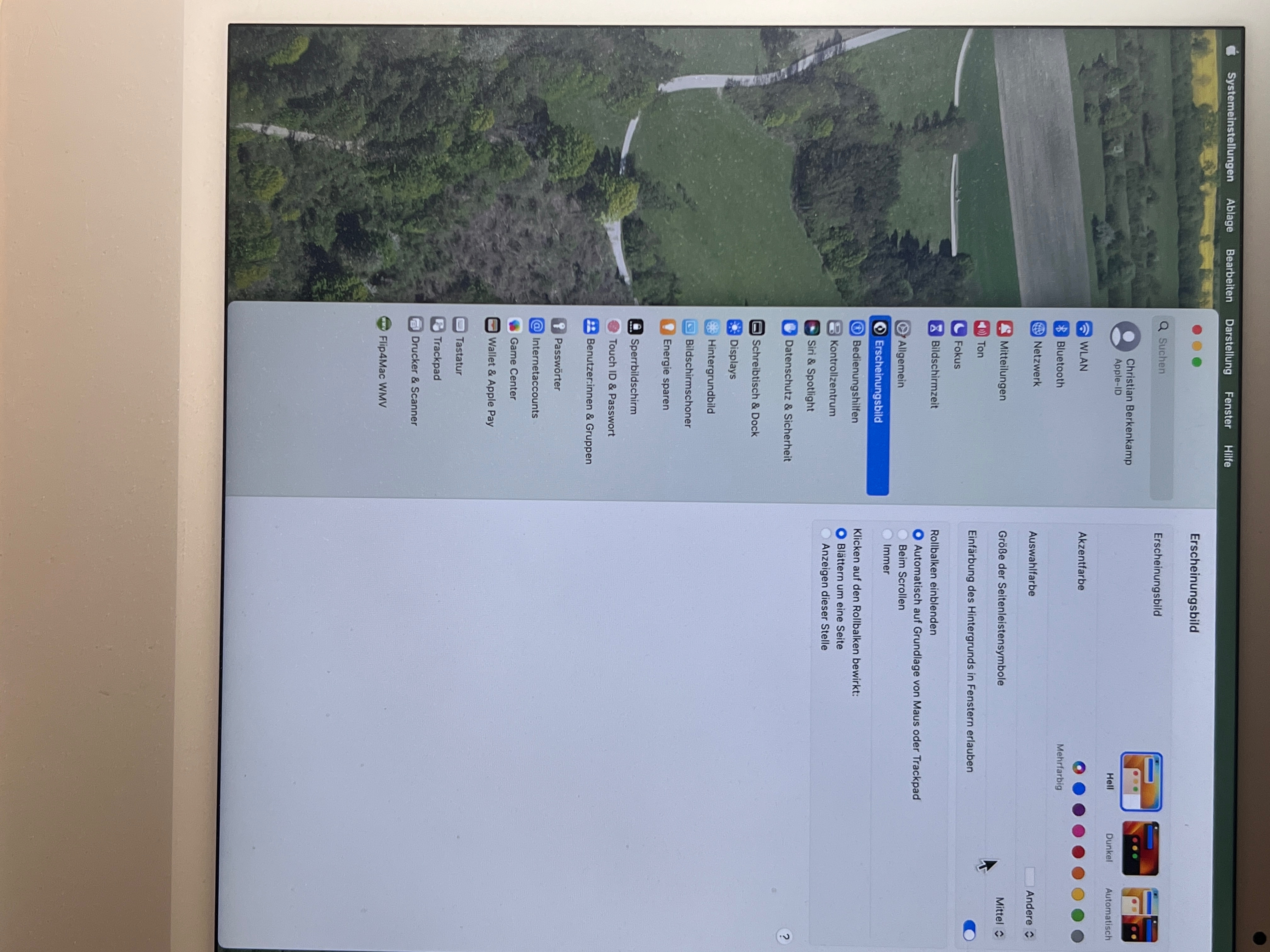 Darstellung Systemeinstellungen