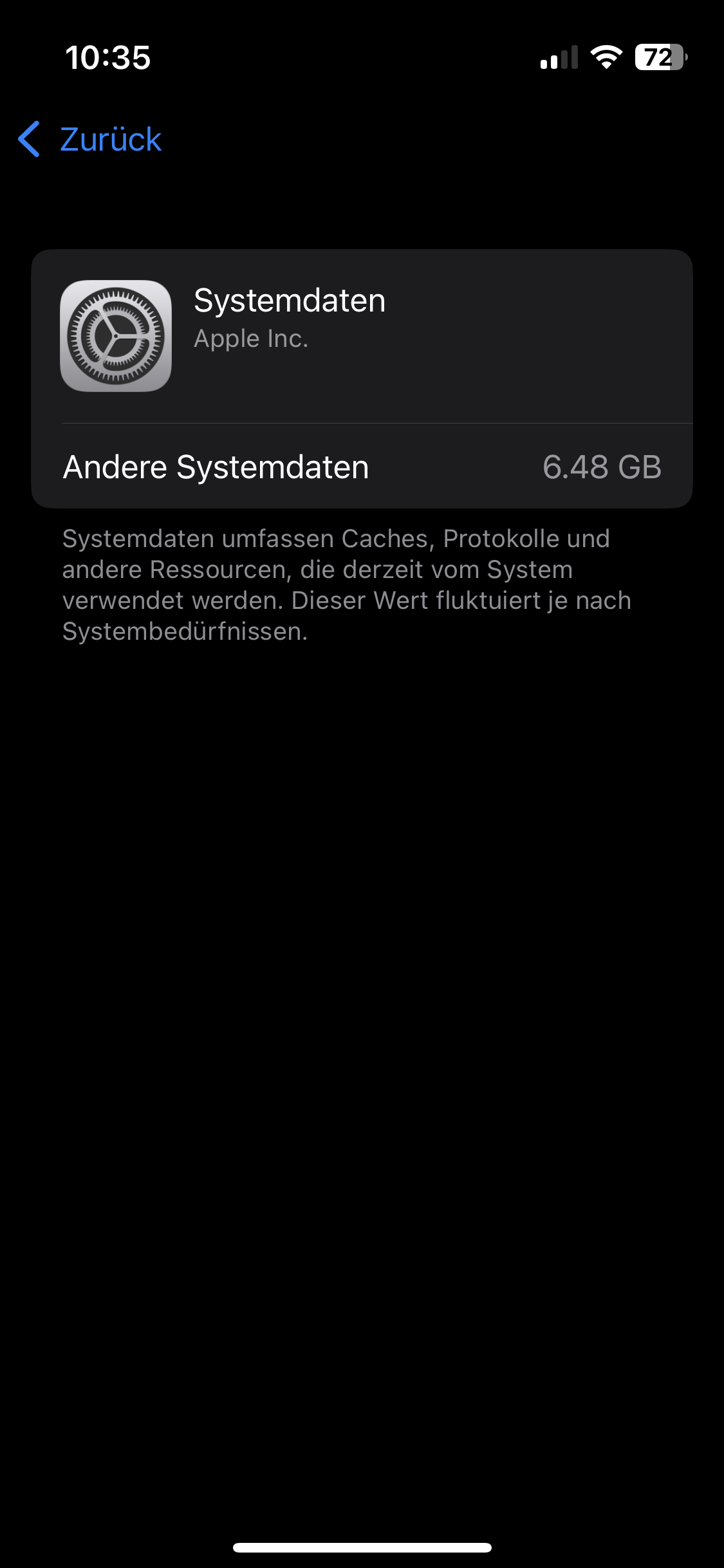 wenn du in "Einstellungen" > "Allgemein" > "iPhone Speicher" gehst, was wird dir ganz unten in der Liste bei "Systemdaten" als Speicher angezeigt? Folgender Screenshot zeigt dir, was die Systemdaten umfassen: