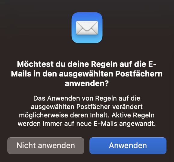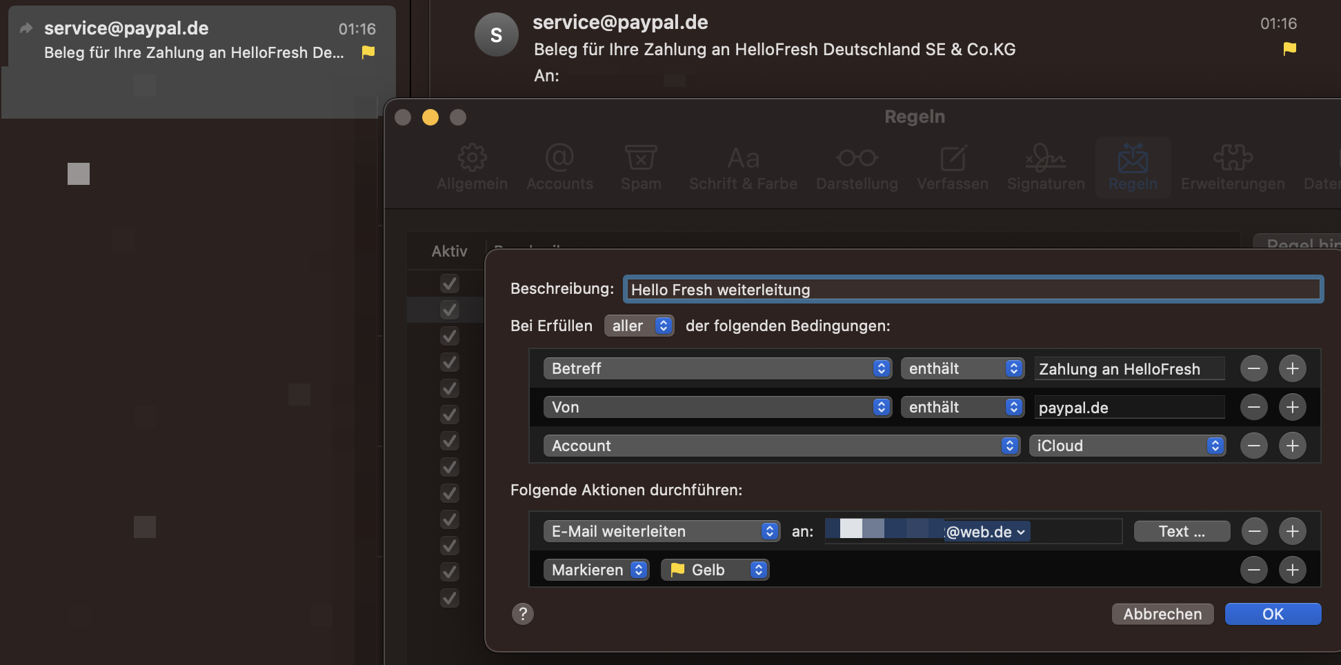 Mail Regel: Email weiterleitung wird nicht ausgeführt