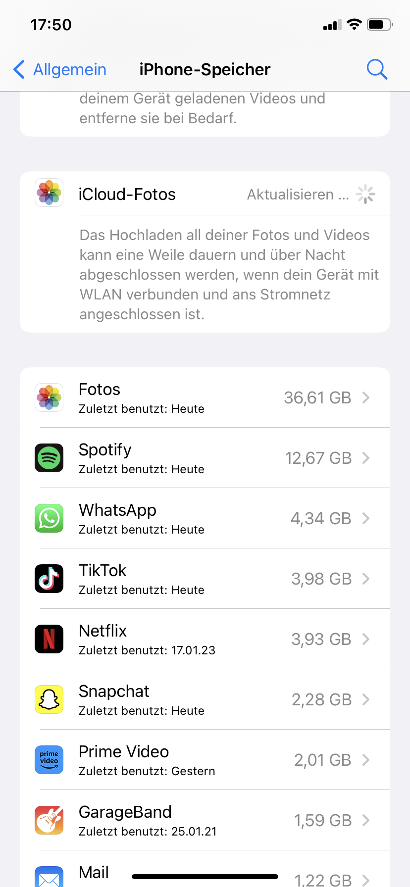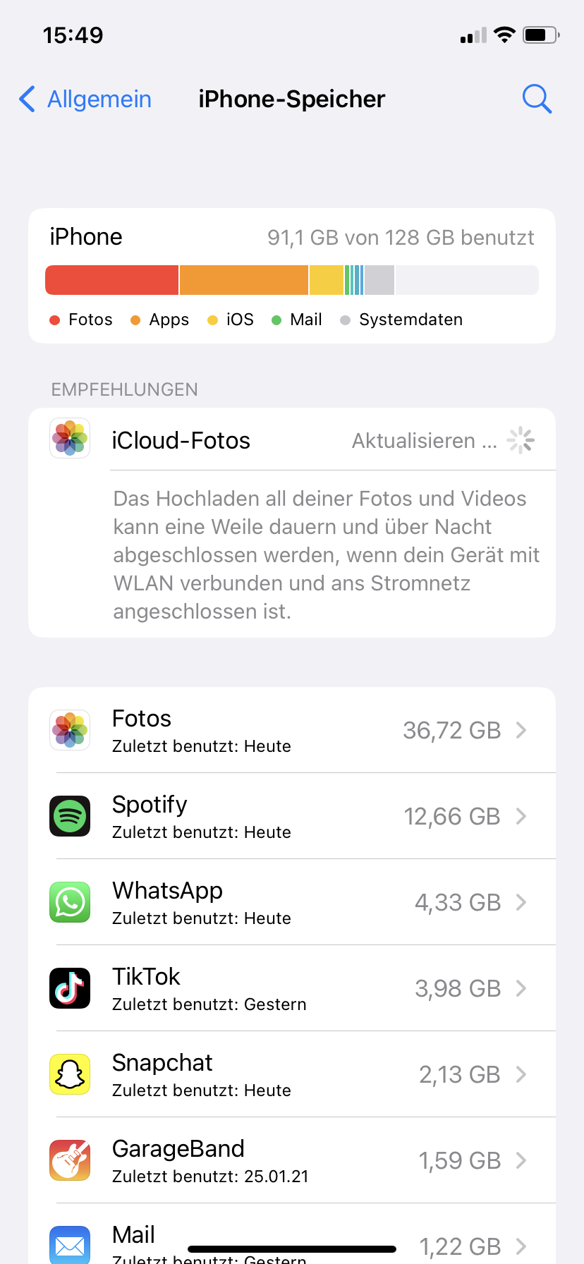 Mein Backup für mein Iphone 11 ist viel zu gross. Es werden 36,6 GB dafür benutzt. Dadurch ist mein ganzer Speicherplatz voll (50 GB).