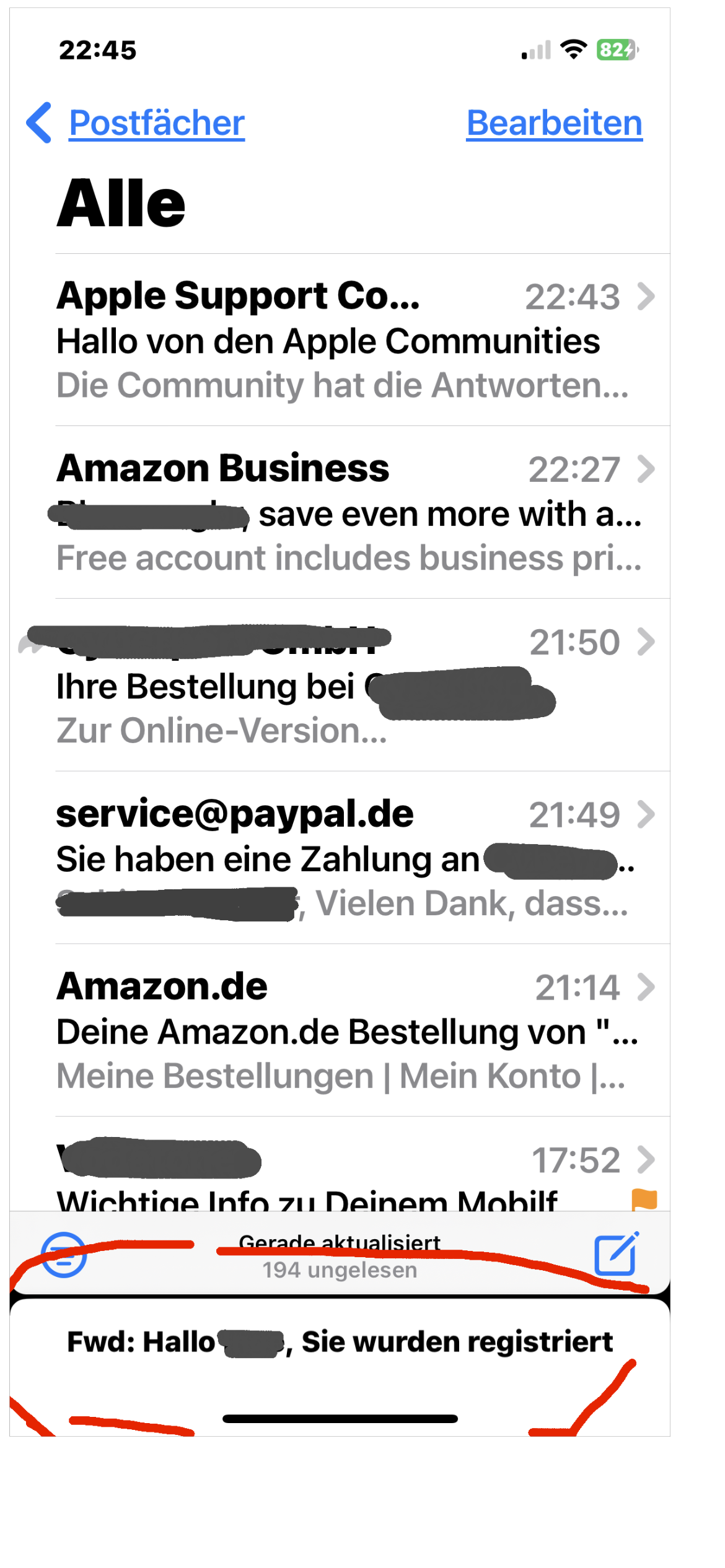 Sogar mail vom Homebildschirm entfernt und wieder neu hinzugefügt.