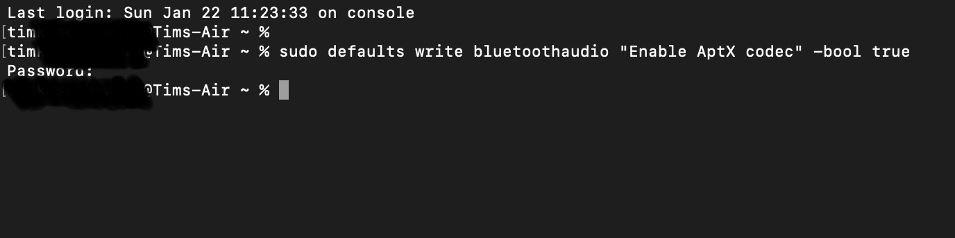 Ich möchte per Bluetooth über meinen MacBook Air Mac OS 13.1 aptX einschalten.