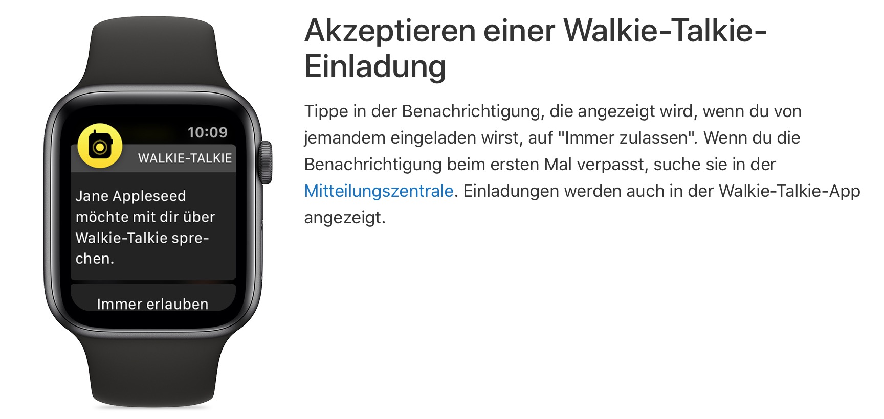 Ich kann von meinen Kontakten via Waklie-Talkie eingeladen werden und mit ihnen sprechen.