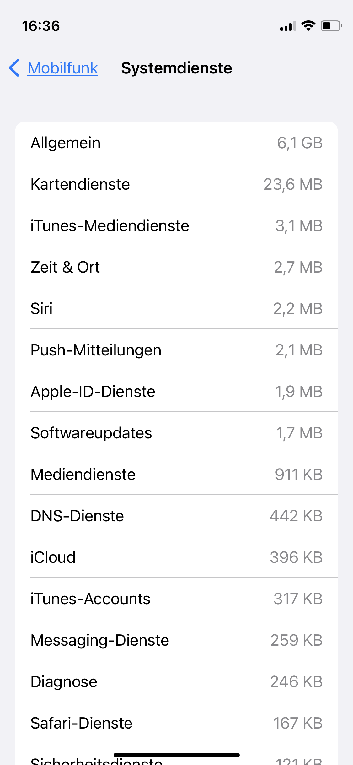 Seit drei Tagen zieht das iPhone unter Systemdienst allgemein ständig 2-3 GB mobiles Datenvolumen unter iOS 16.2