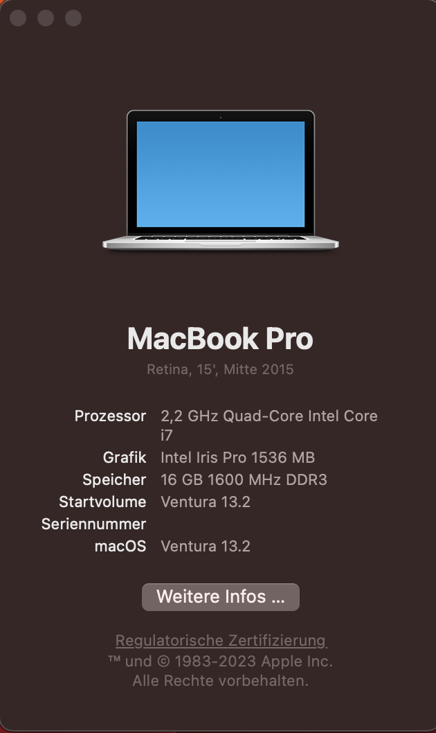 Es bliebe dir allerdings noch die Option, ein gepatchtes MacOS (bis hin zu MacOS Ventura 13.2) zu installieren, ein MacOS also, das zwar seitens Apple als nicht mehr kompatibel mit dem Typ oder dem Modelljahr deines Mac deklariert wird, das aber von äusserst fachkundigen Entwicklerteam für diese "nicht-kompatiblen" Rechner lauffähig gestaltet wurde.