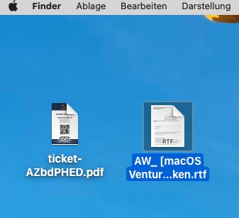 Ich möchte zwei völlig verschiedene einseitige Dokumente drucken. Also z.B. ein jpg.-Bild und eine Textseite in Word. Beide Dateien habe ich auch dem Schreibtisch. Ich kann also beide Dateien auswählen und dann im Finder -> Ablage -> Drucken wählen.