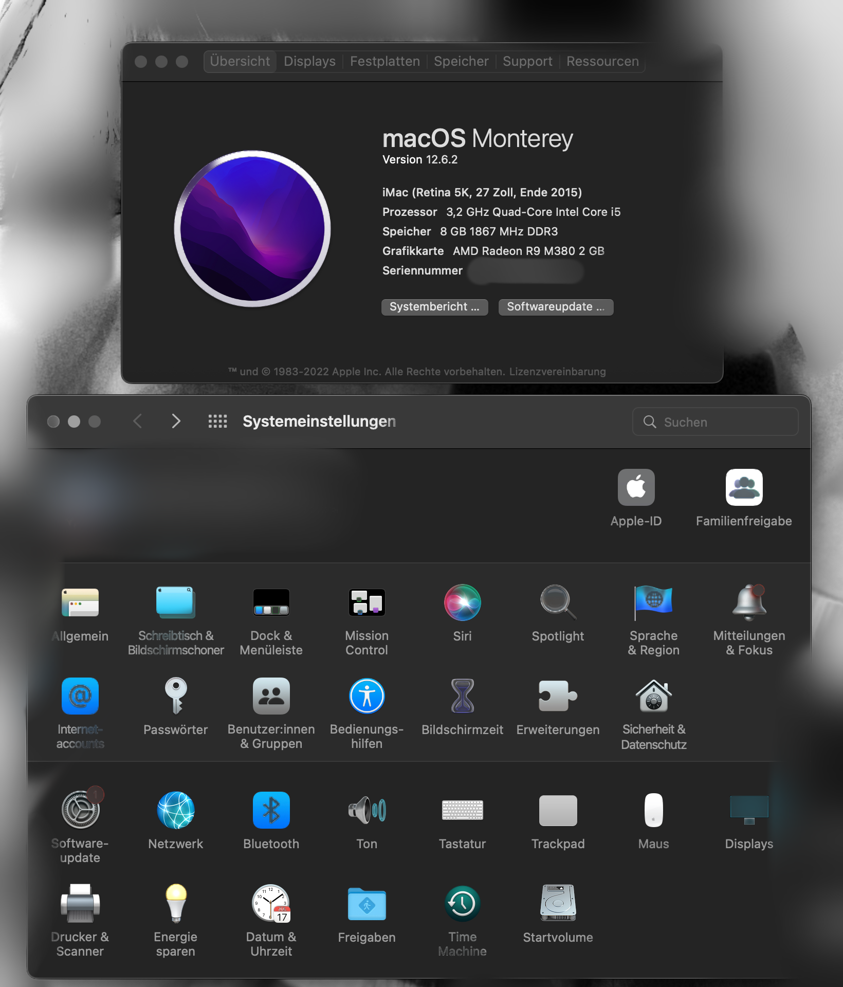 Infos zum Mac und den Systemeinstellungen, wo eigentlich TouchID Einstellungen sein sollten - Siehe Bild). Leider sind diese nicht dort und wo finde ich diese?