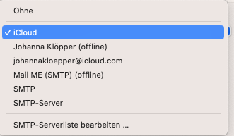 arbeite mit ICloud, nicht mit J.Klöpper. Alle account sind inline geschaltet