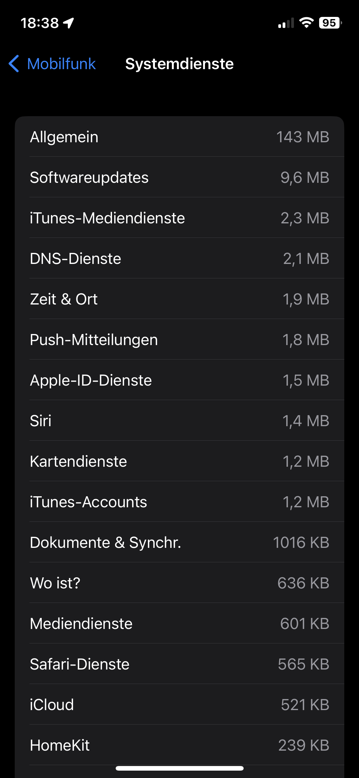 Habe dann Zähler zurückgesetzt und das Iphone zieht Aktuell ca.200mb Systemdienste am Tag überwiegend fallen sie im Bereich Allgemein an.