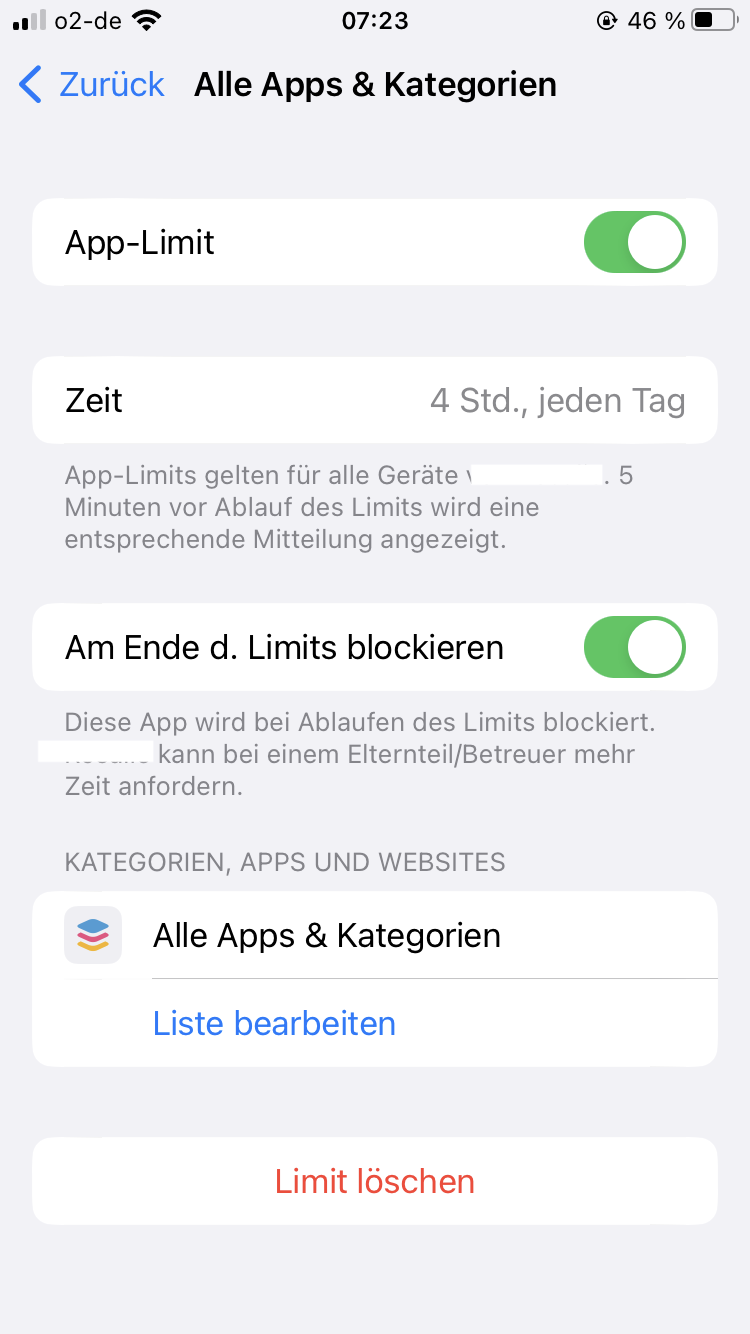 Hallo! Ich habe für meine Tochter App Limits eingerichtet, doch anscheinend ist es möglich, diese zu ignorieren, obwohl ich eingestellt habe, dass die App danach blockiert werden soll. Ein Bildschirmcode ist auch eingerichtet.