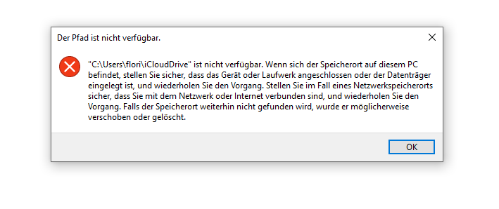 Ich habe die iCloud vollständig deinstalliert, allerdings löscht sich der ICloud-Drive Ordner nicht löschen. Egal was ich probiere. Er meldet immer Pfad ist nicht verfügbar.