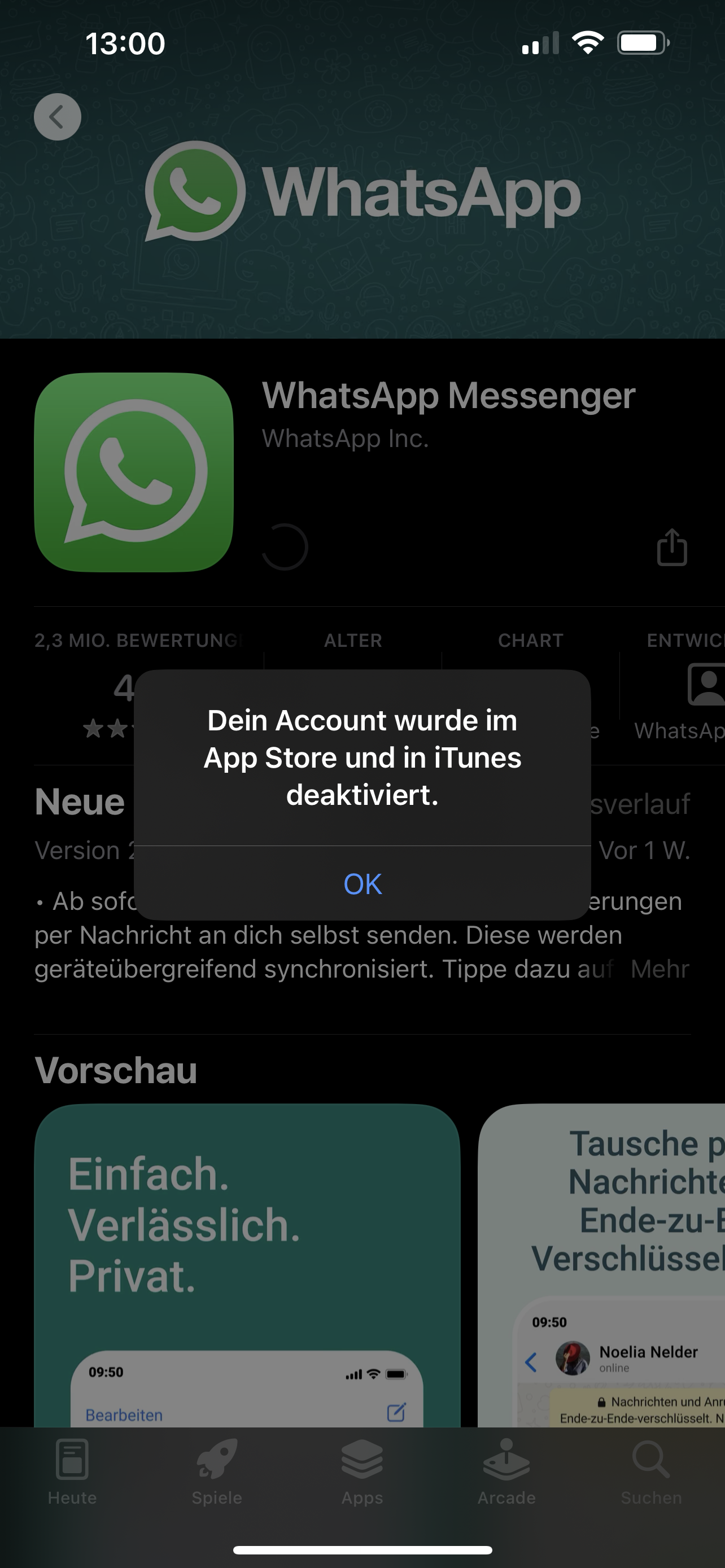 Warum kann ich nicht aktualisieren da kommt deine account wurde im App Store und iTunes deaktiviert