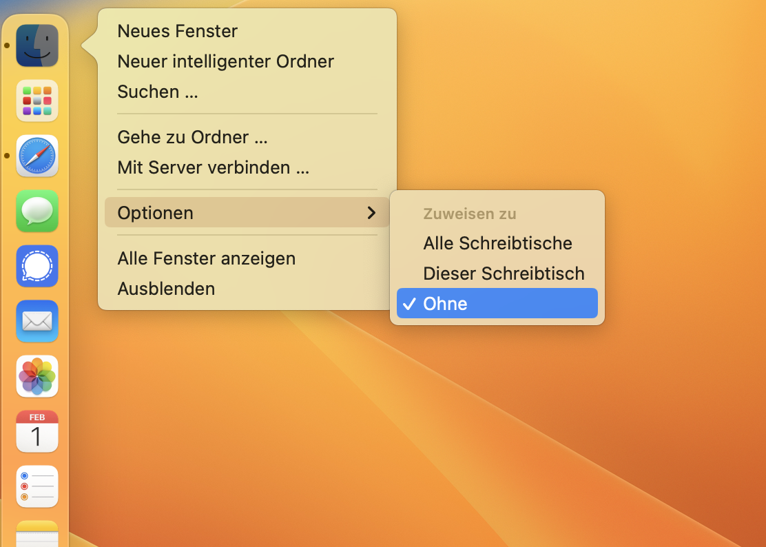 Finder rutscht nach Ventura update automatisch immer auf den ersten Bildschirm