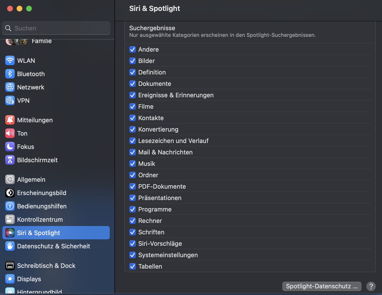 Prüfe mal in den Einstellungen ob du dem Finder erlaubt hast alle Kategorien zu durchsuchen. Vielleicht hast du einen Punkt abgewählt. (Siehe Screenshot)