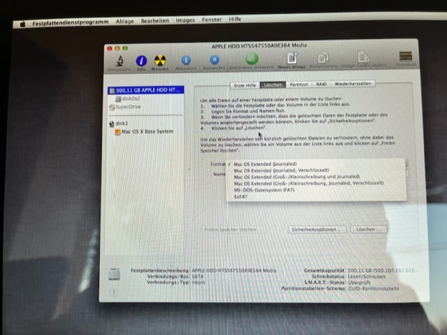 MacBook Pro erkennt nach Löschen von HD und HD Data kein Laufwerk zum erneuten installieren von OS X