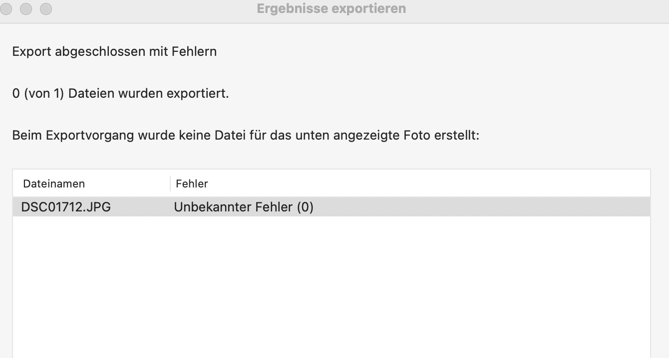 Zusätzlich ist das Exportieren der Fotos nicht möglich (Eigentümerfehler (0)).