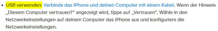 Wenn ich mein iPhone per USB mit meinem HP-Laptop verbinden möchte, um den Hotspot zu nutzen, will es sich einfach nicht mit dem Hotspot per USB verbinden. Drahtlos ist kein Problem, jedoch möchte ich meinen Hotspot gerne per USB nutzen. Kann mir da jemand weiterhelfen?