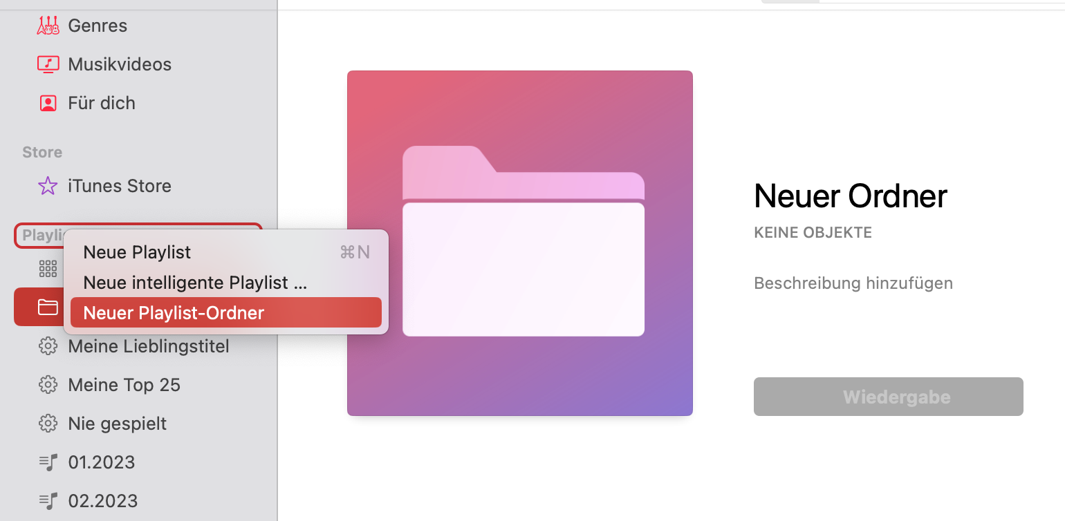 Playlist erstellen in dem weitere Playlist einzel drin sind