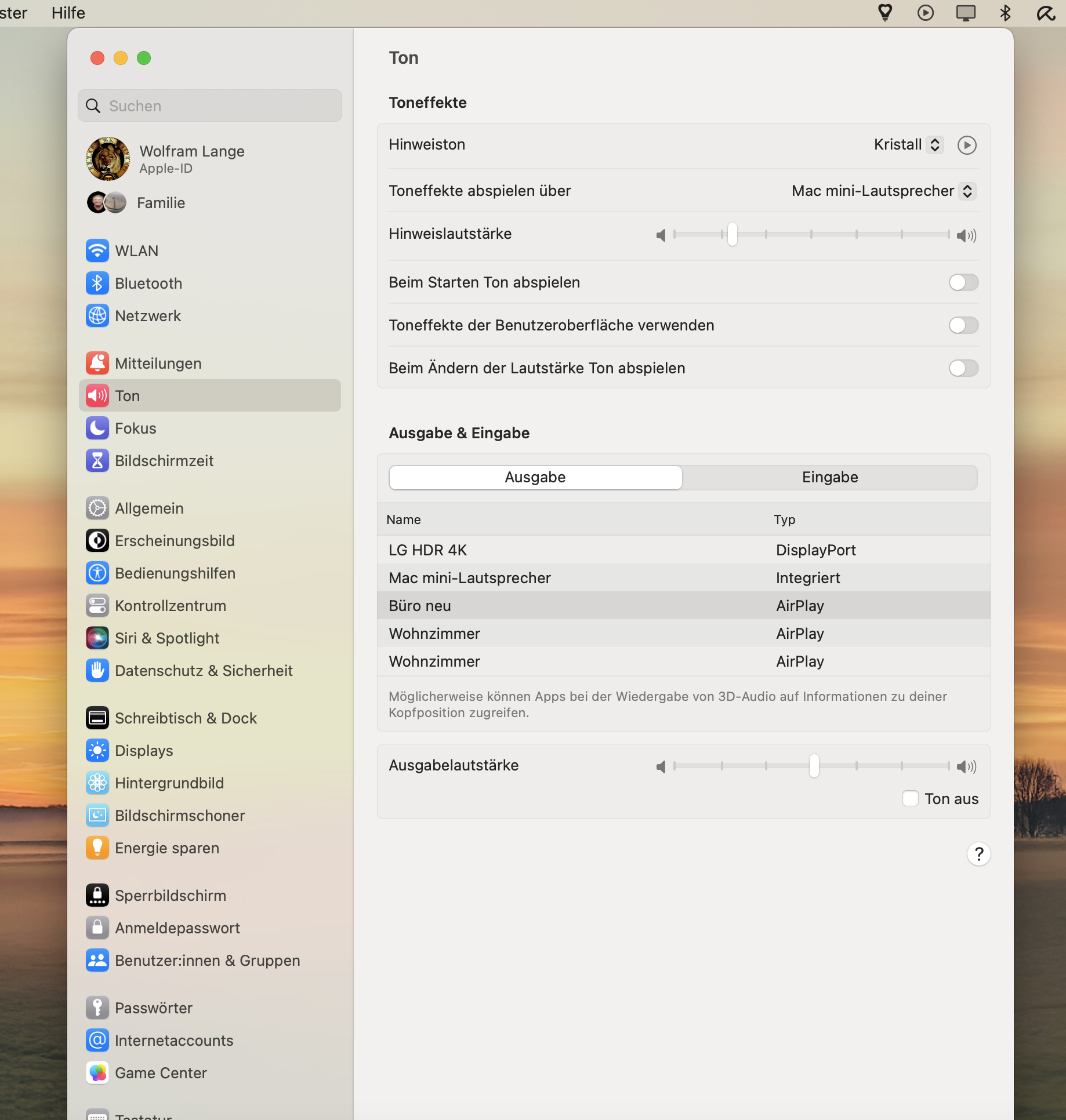 Am Audioanschluss des Mac, das dürfte wohl nur der Kopfhörerausgang sein (???) sind keine "Geräte angeschlossen". Meine beiden HomePod's mini sind - Dank moderner Technik - per AirPlay mit dem Mac verbunden.