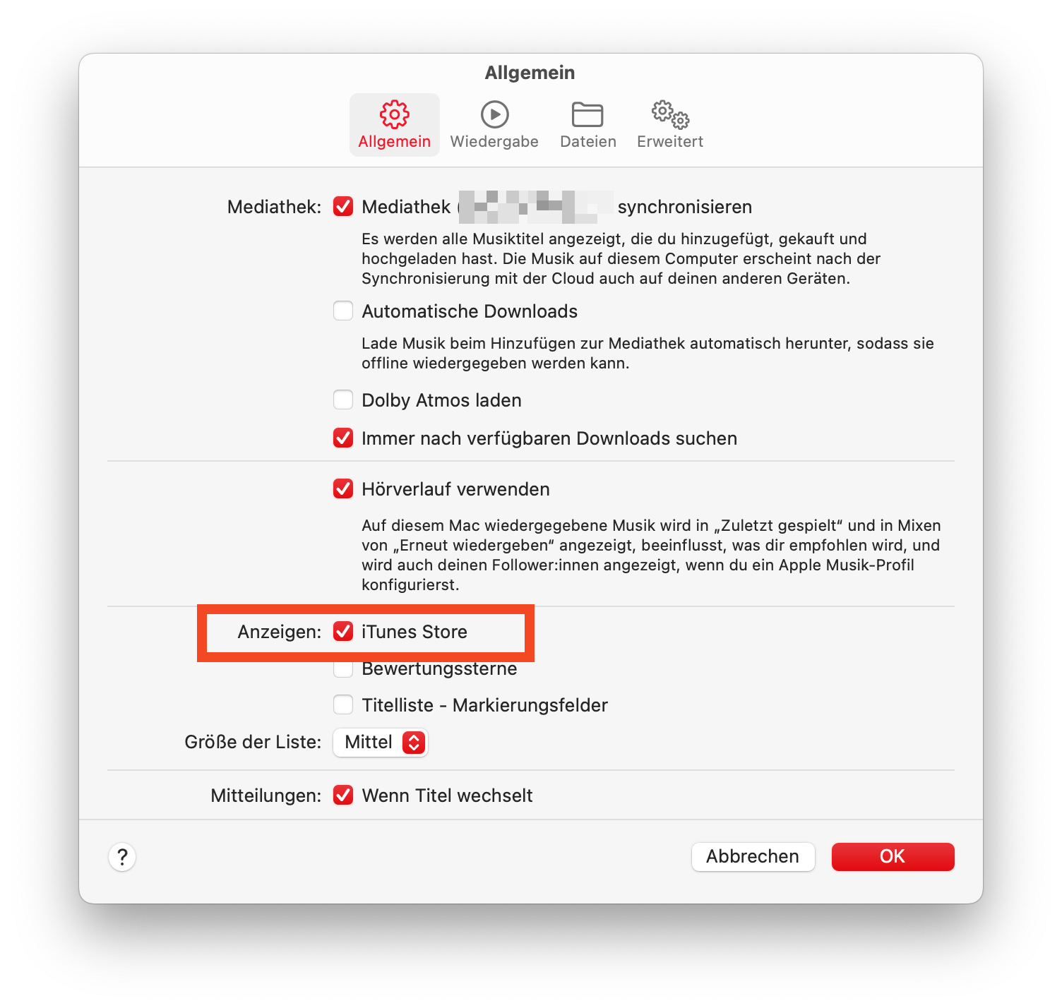 Klicke hierzu in der Musik App oben auf Musik und dann auf Einstellungen... Im Reiter Allgemein kannst du dir den iTunes Store anzeigen lassen: