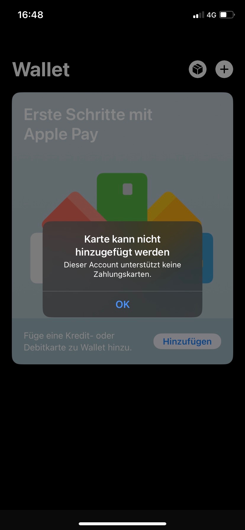 Immer wenn man auf Karte hinzufügen in der Wallet App klickt, kommt das: