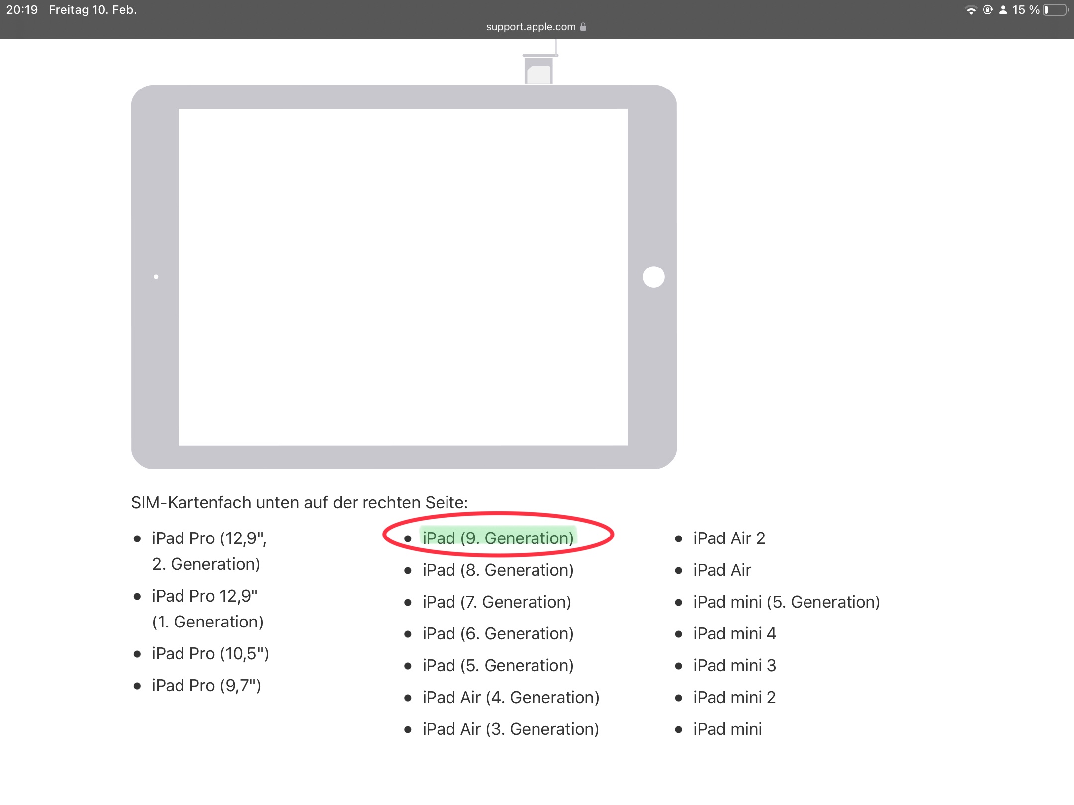 iPad 9. Generation hat keine SIM-Kartenfach