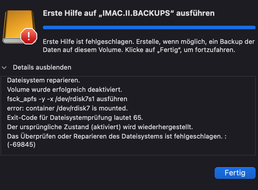 ein Defekt wurde nicht festgestellt. Lediglich ein Volume konnte nicht gemountet werden, dass kann schon mal passieren. Solange das kein Dauerzustand ist würde ich mir sonst keine große Gedanke machen.