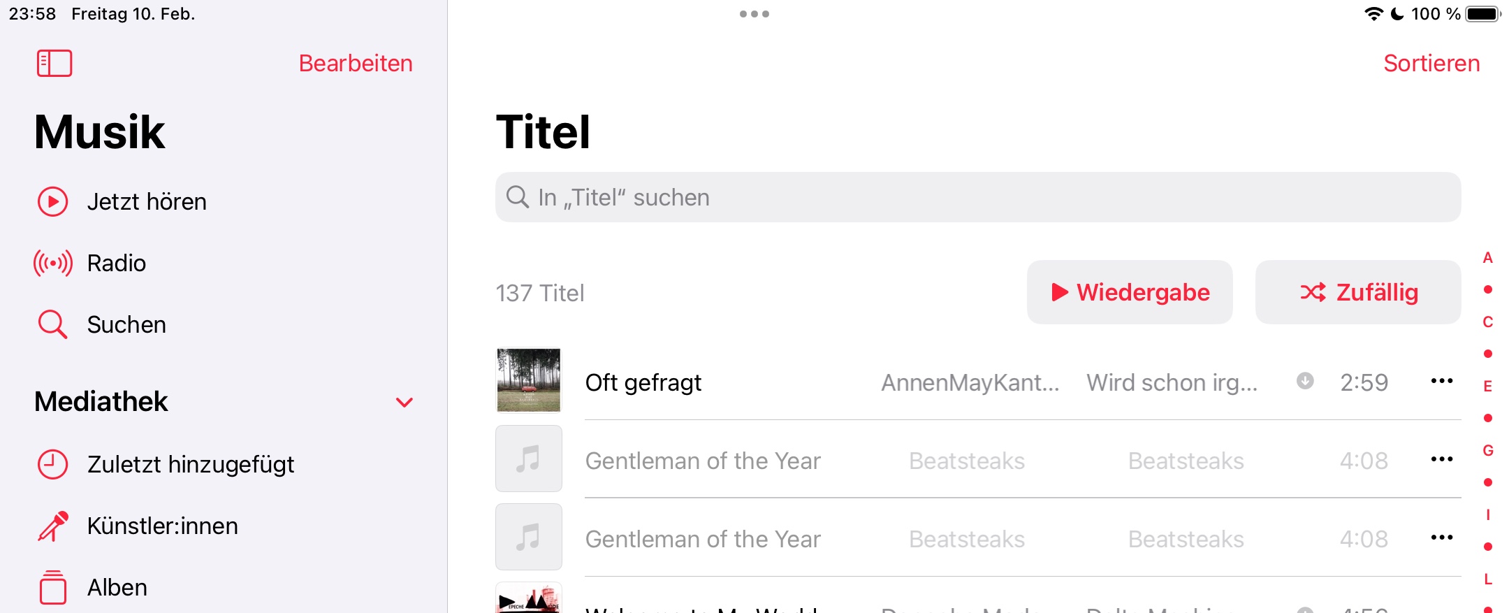 Da einmal bitte drauf klicken. Dann müsste auffallen, ob der Song noch da ist, wo Musik den Song vermutet.