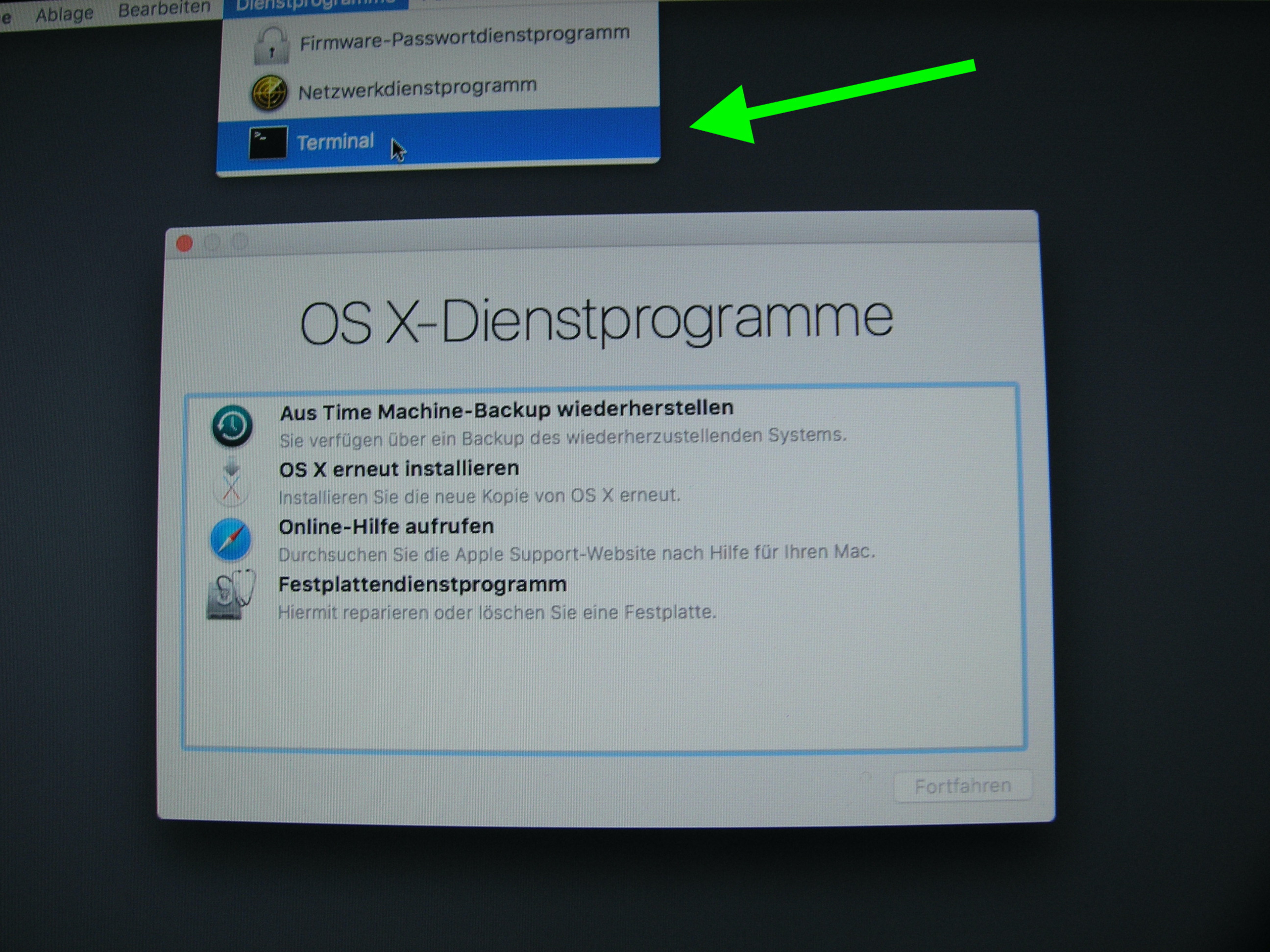 Nachfolgend wieder Terminal öffnen und folgenden Befehl eintippen (oder per copy&paste)