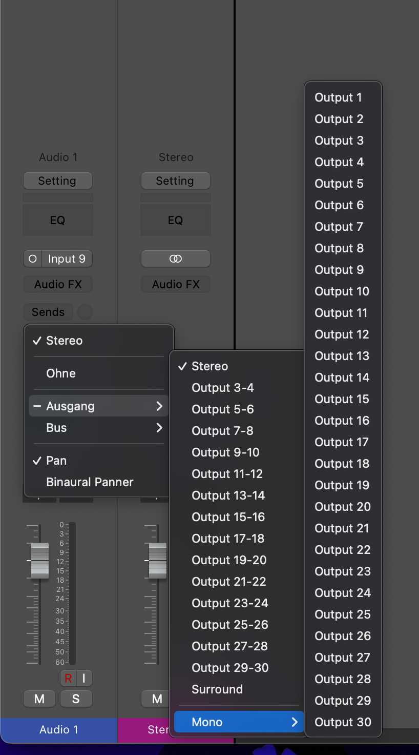 Ich habe 2 Mics am DAW und möchte eines am linken Ohr und das andere im rechten hören. Irgendwie bekomme ich am Ausgang immer nur beide zusammen. Zu dumm bin ich sicher, aber irgendwie sollte doch so etwas möglich sein. Hat jemand ein Idee, liegt das an Logic Pro Einstellungen oder an denen des DAWs?