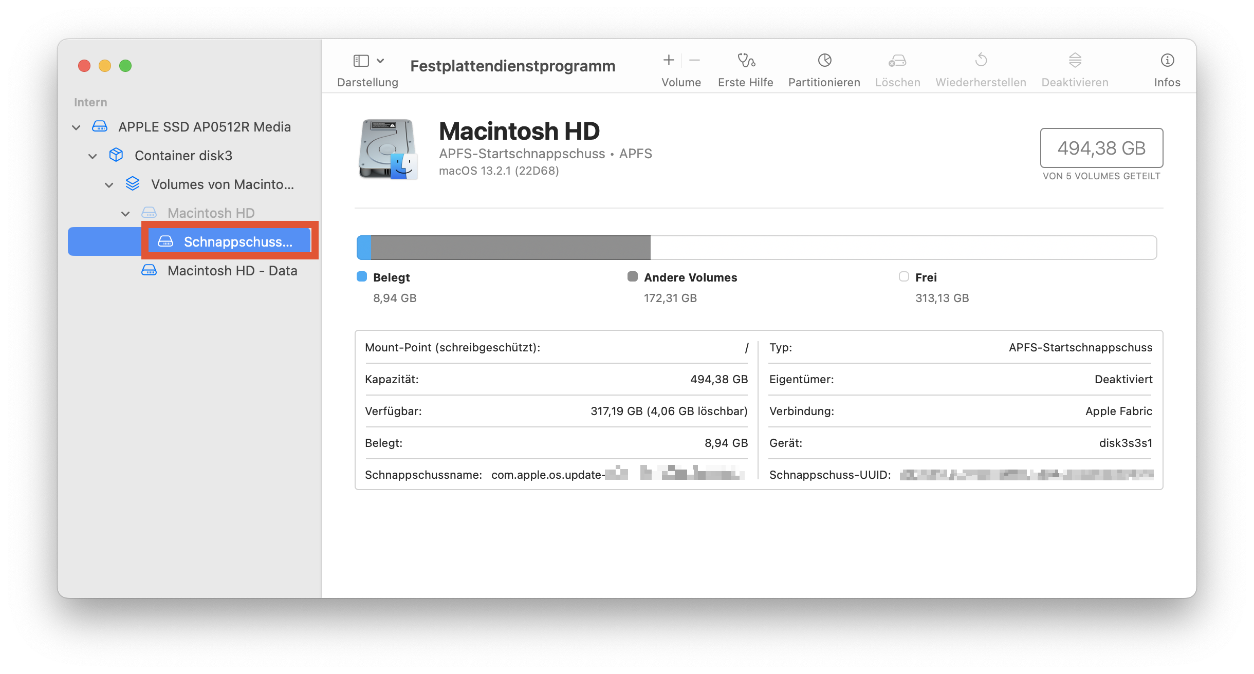 Schnappschüsse kannst du dir unter anderem mit dem Festplattendienstprogramm anzeigen lassen: