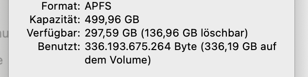 Woher stammen diese Angaben in der Information? Wie kann ich herausfinden, welche GB konkret mit 'löschbar' gemeint sind? Irgendwoher muss ja das MacOS das her haben? Ja, welche Bereiche oder Daten könnten da aus 'Sicht' des Sytems gemeint sein?