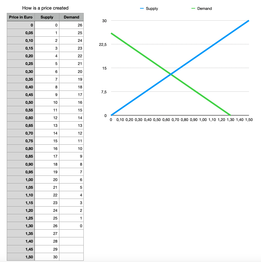 Dargestellt werden sollen Angebot und Nachfrage.