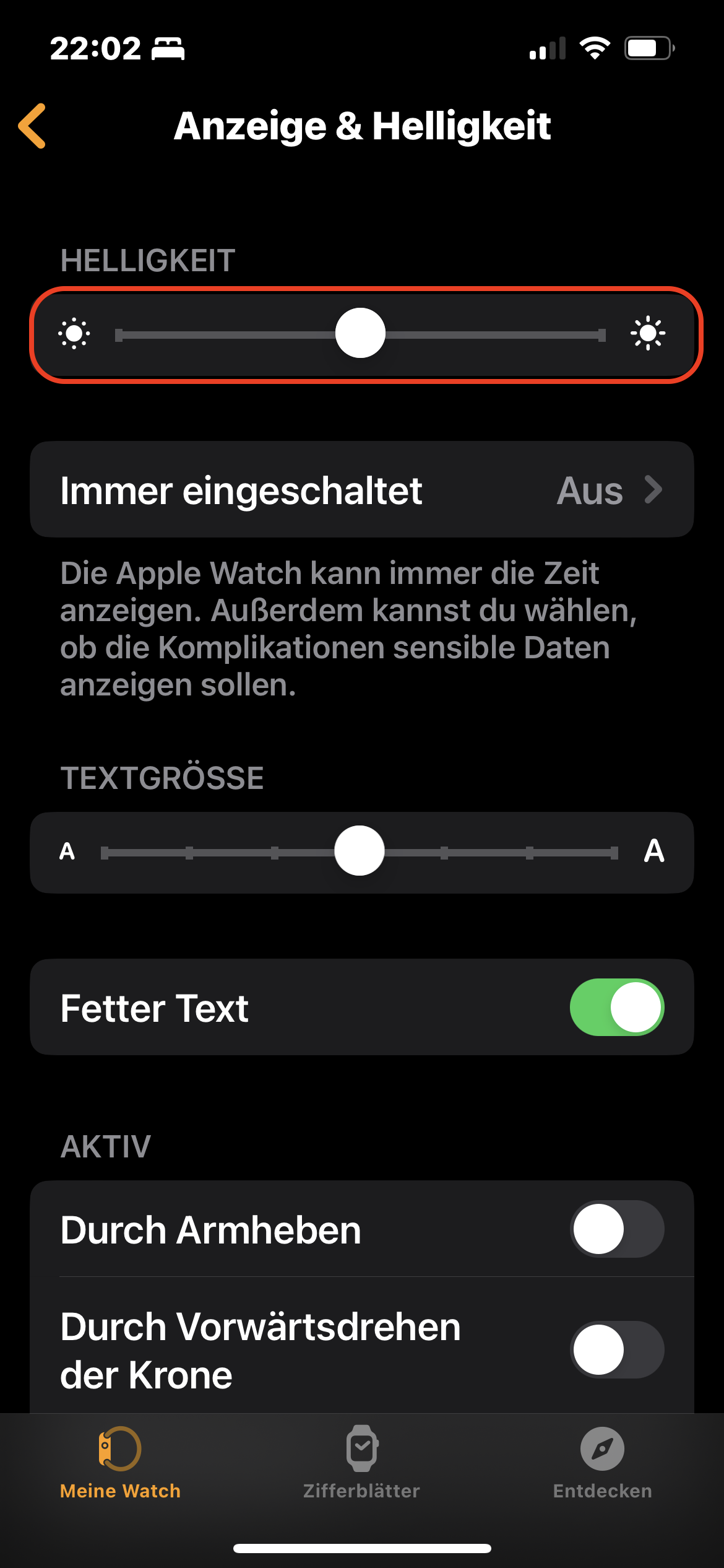 Meine ganz neue Watch Ultra ist bei dunkler Umgebung kaum ablesbar, das Display ist zu dunkel. Helligkeit steht auf Max. Meine alte Watch ist der gleichen Umgebung viel heller. Habe schon fast alles probiert.