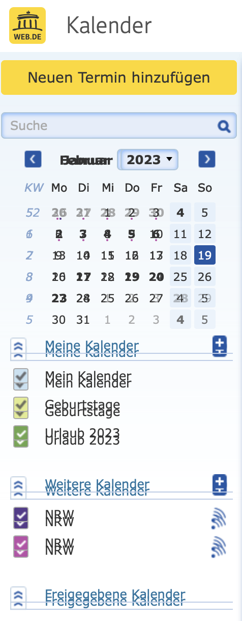 ich habe ein Problem mit Safari Version 16.3 (18614.4.6.1.6). Beim meinem E-Mail Anbieter WEB.DE wird der Kalender im Browser nicht richtig dargestellt (Siehe Screenshot)
