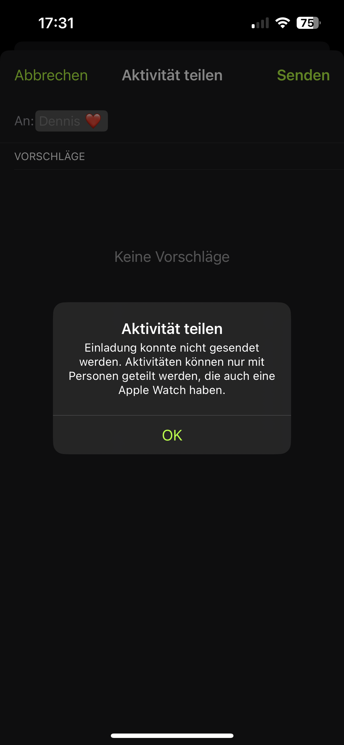 mein Mann und ich besitzen beide eine Apple Watch Serie 6. Wir haben seit kurzem beide ein neues iPhone 14. Bei dem Vorgängermodell iPhone 12 hat das teilen der Aktivitäten einwandfrei funktioniert. Jetzt zeigt die Fitness App immer an das, das teilen nur möglich ist wenn wir beide eine Apple Watch haben. Watch und iPhone sind auf die aktuellste Software Version upgadatet worden. Haben auch beides neu gestartet. Hat jemand eine Lösung zu dem Problem?