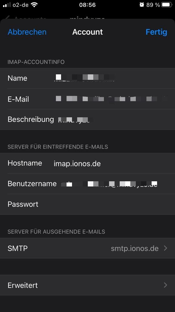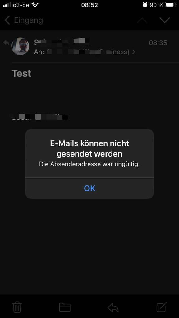IONOS Mailversand iPhone // „Absenderadresse ungültig“