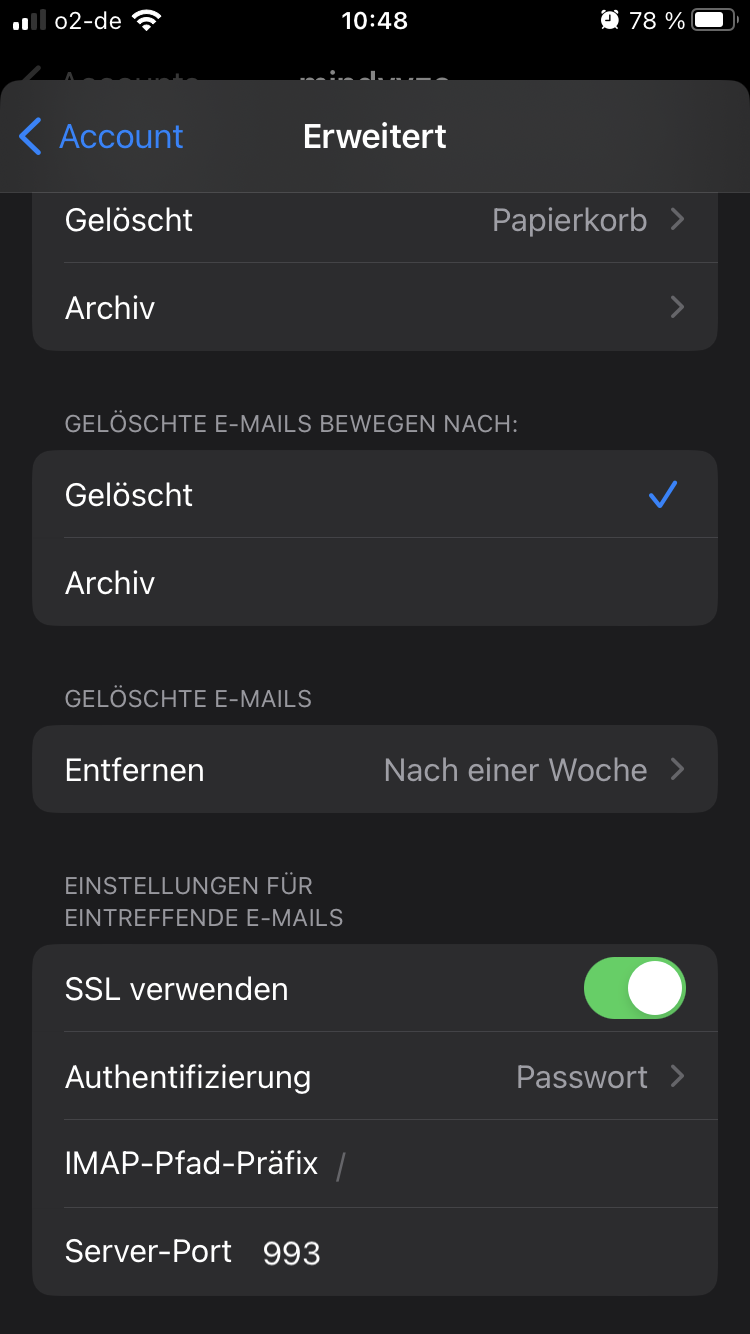 (IONOS Mailserver, Empfang funktioniert, Versand vom iPhone klappt nicht)