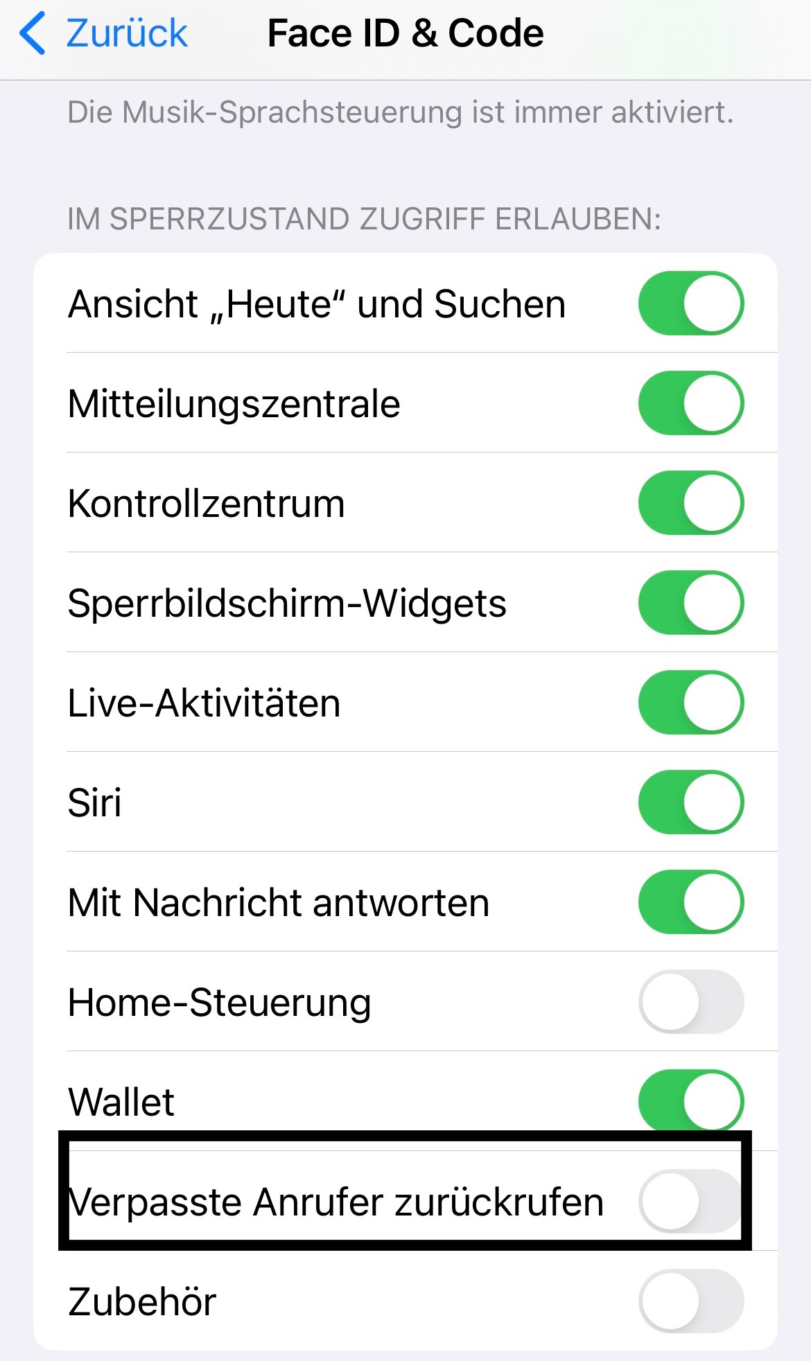 Trotz Deaktivierung wird verpasster Anruf aus Sperrbildschirm zurückgerufen