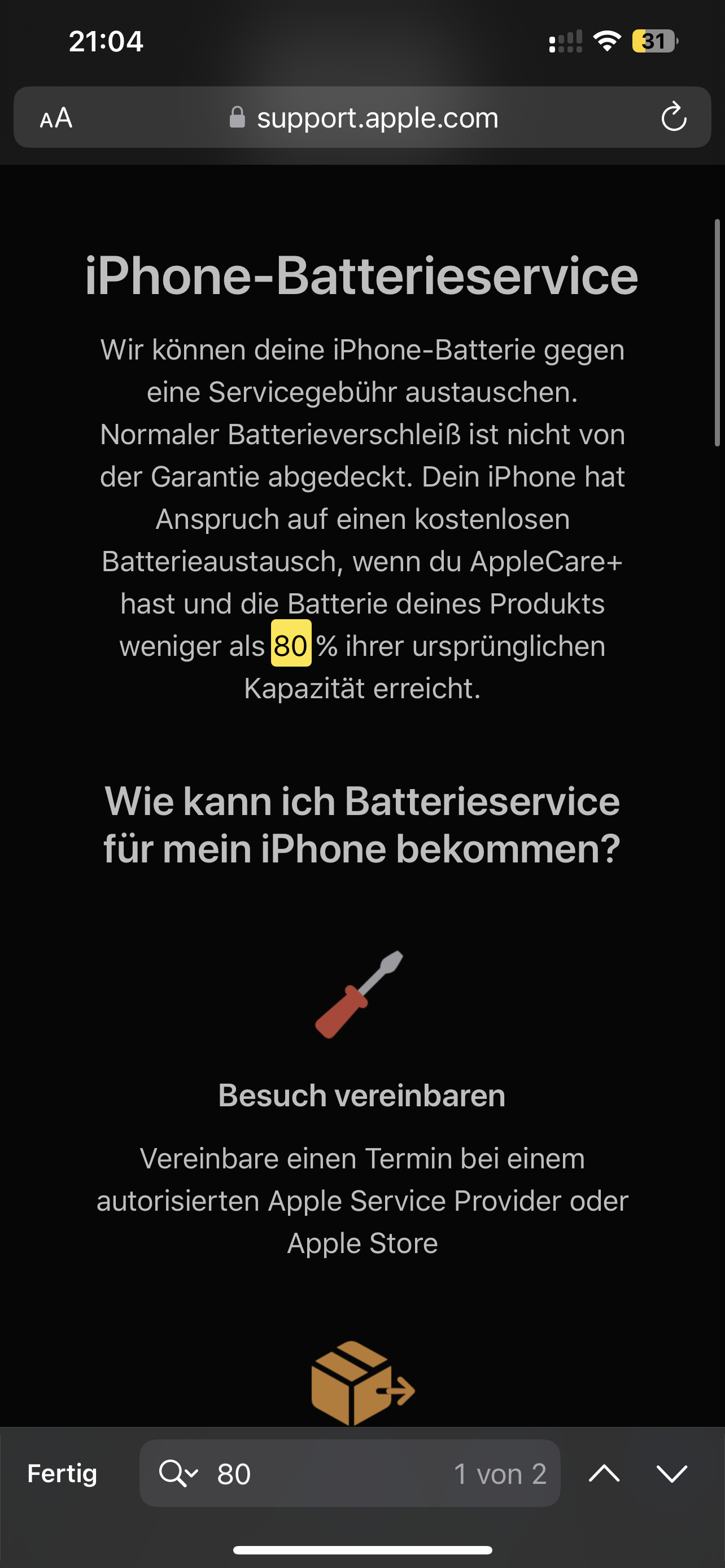 ich wollte nur anmerken, ein Austausch weil unter 80% ist nur mit AppleCare+ Gratis, ansonsten gilt die Batterie als verbraucht und der Austausch muss selbst bezahlt werden.