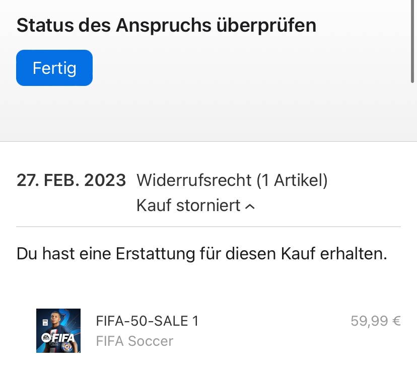 Den aktuellen Status deiner Rückerstattung kannst du hier einsehen: https://reportaproblem.apple.com