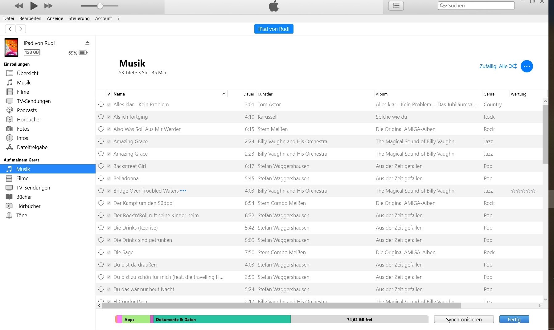 Da ich über 1000 Musiktitel, einige Videos und Hörbücher auf meinem iPad pro hatte und alles reorganisieren wollte, habe ich mal aufgeräumt und bin wie folgt vorgegangen: