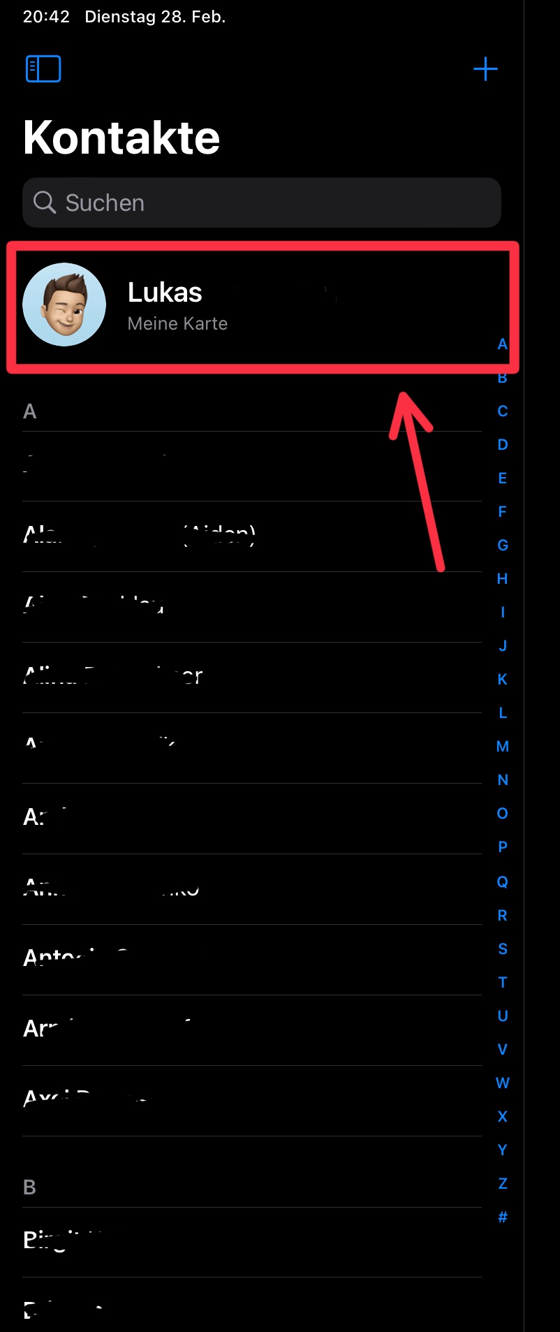 Das Feld „Meine Karte“ befindet sich über deinen ganzen Kontakten!