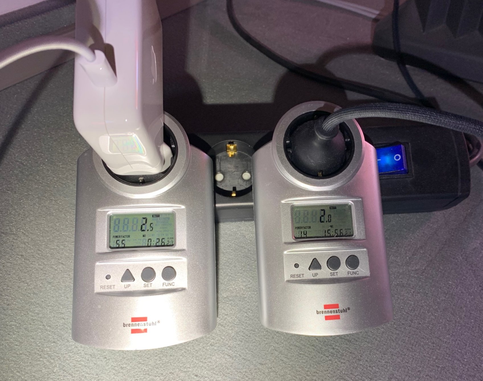 Wenn ich zusatzlich das Ladegerät an den Macbook anschliesse, sinkt der Verbrauch auf zusammen 4,5W. Dies ist etwa der Verbrauch, den ich erwarten würde.