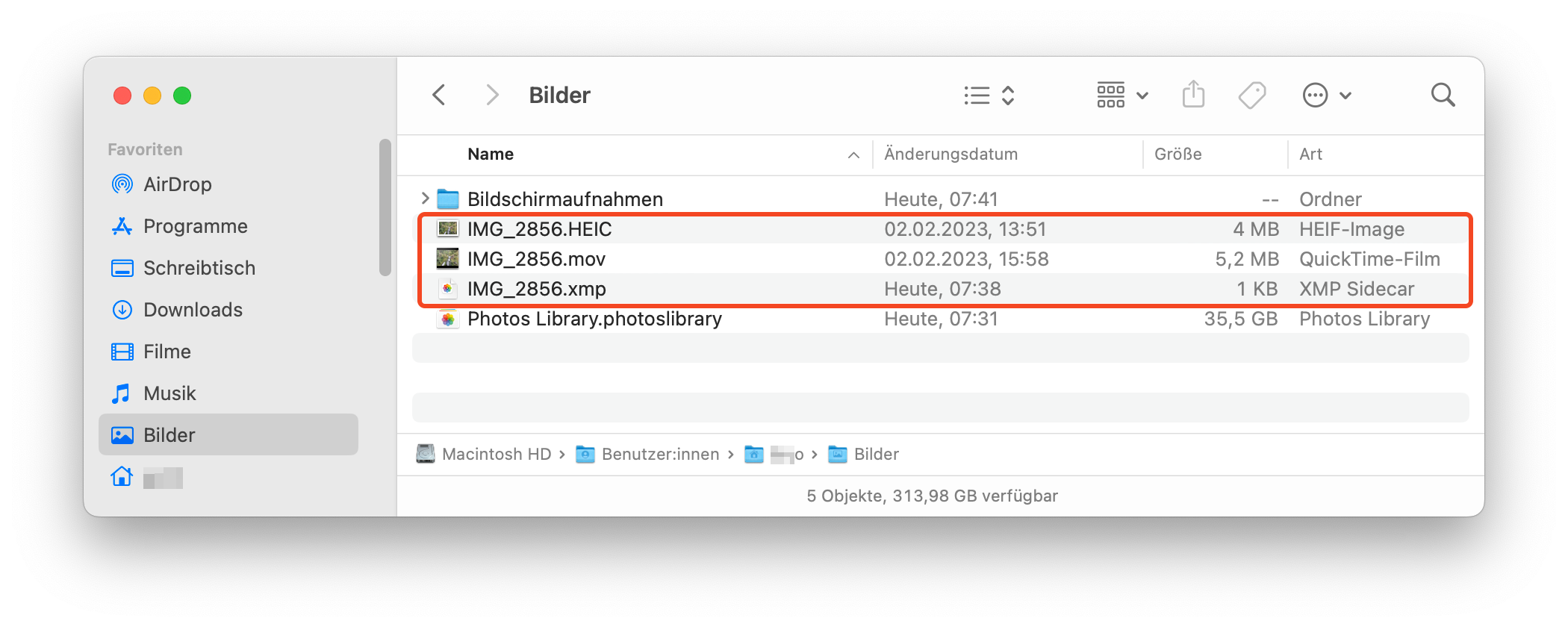 .HEIC Fotos aus Foto App als .HEIC exportieren